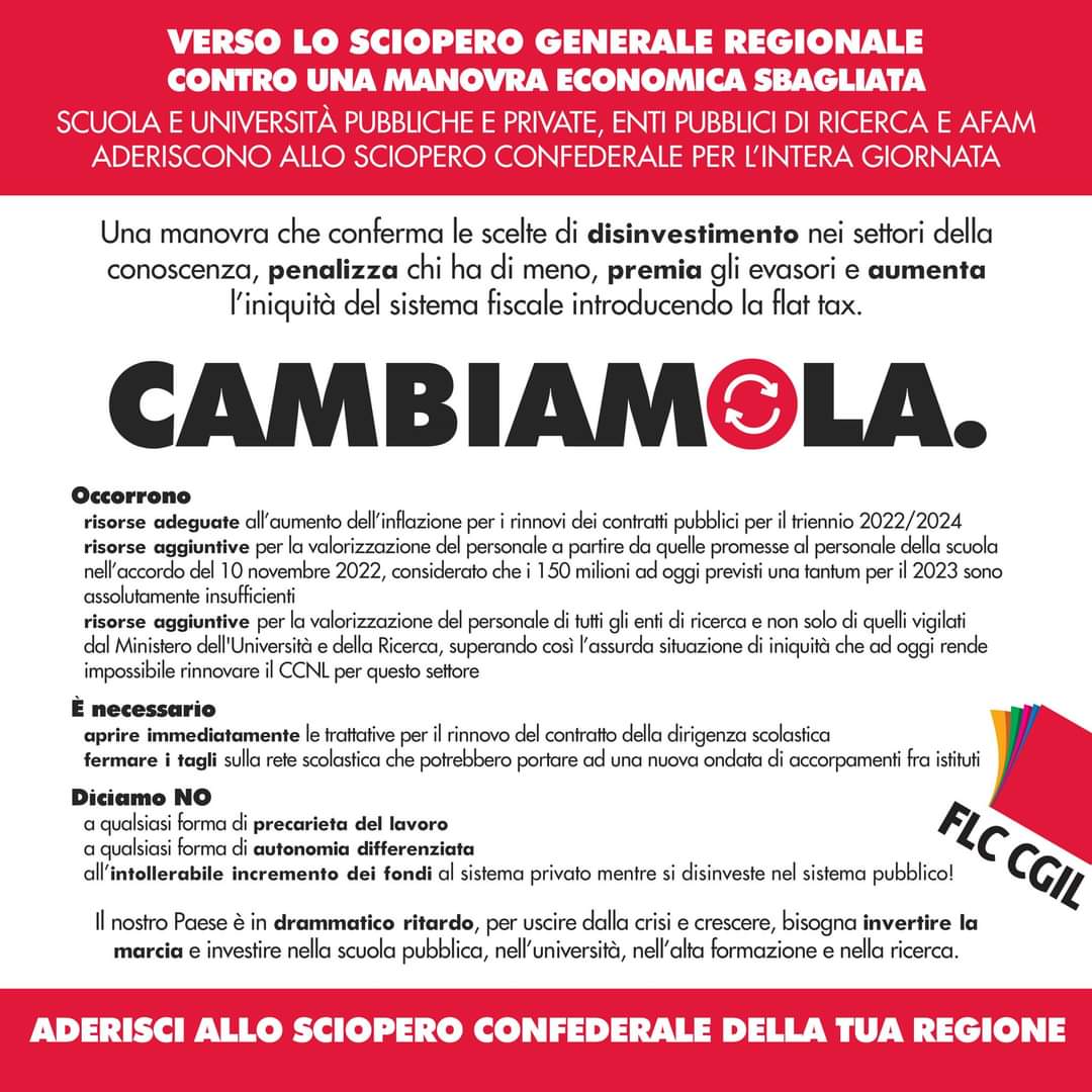 Circ. n. 46 - Proclamazione sciopero generale regionale per tutti i settori pubblici e privati: CGIL SCUOLA PIEMONTE e UIL RUA SCUOLA PIEMONTE: 15/12/2022 intera giornata